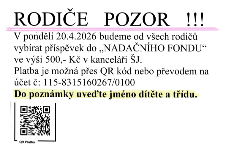 V tento den si můžete v době od 8.00 - 10.00 hodin prohlédnout MŠ a školní zahradu.